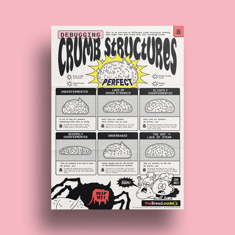 Ever wondered what your sourdough bread's crumb reveals about your baking process? With this expertly designed infographic, you can now become a crumb detective, identifying nuances in your bread's texture and understanding what each tells you about your baking techniques.